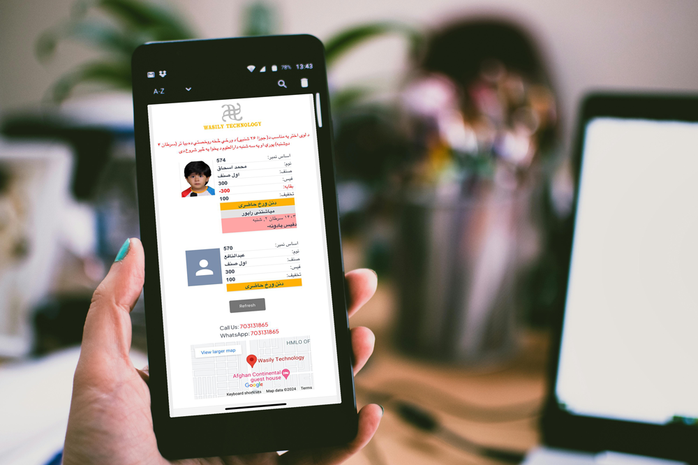 په موبایل پروګرام کی والدین ته د فیس دقیق معلومات
